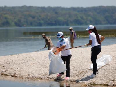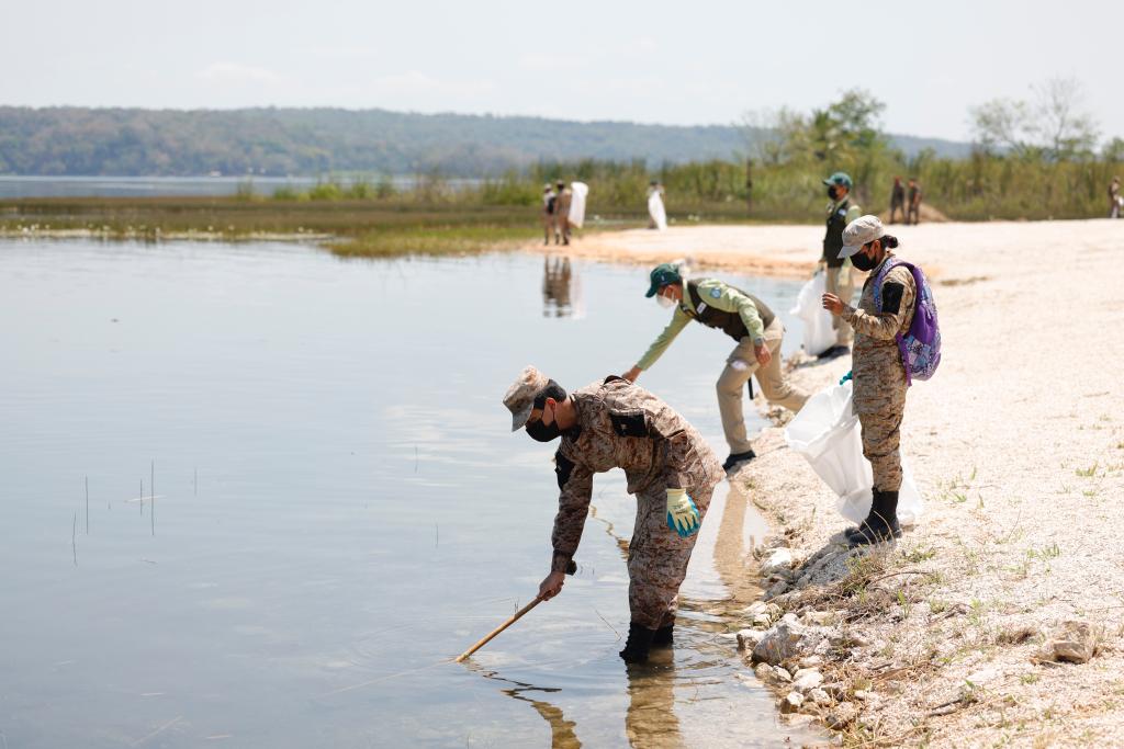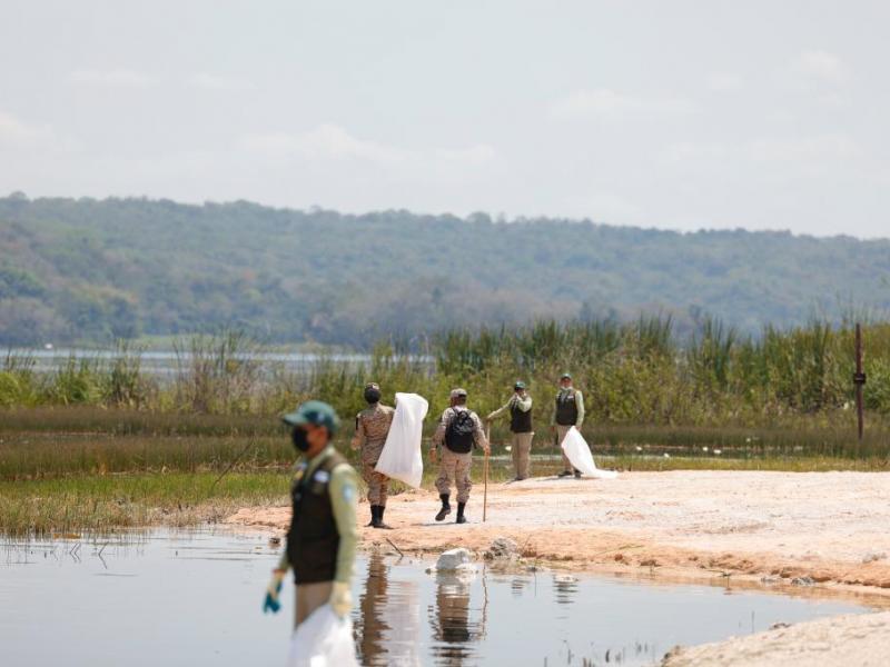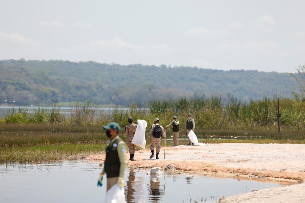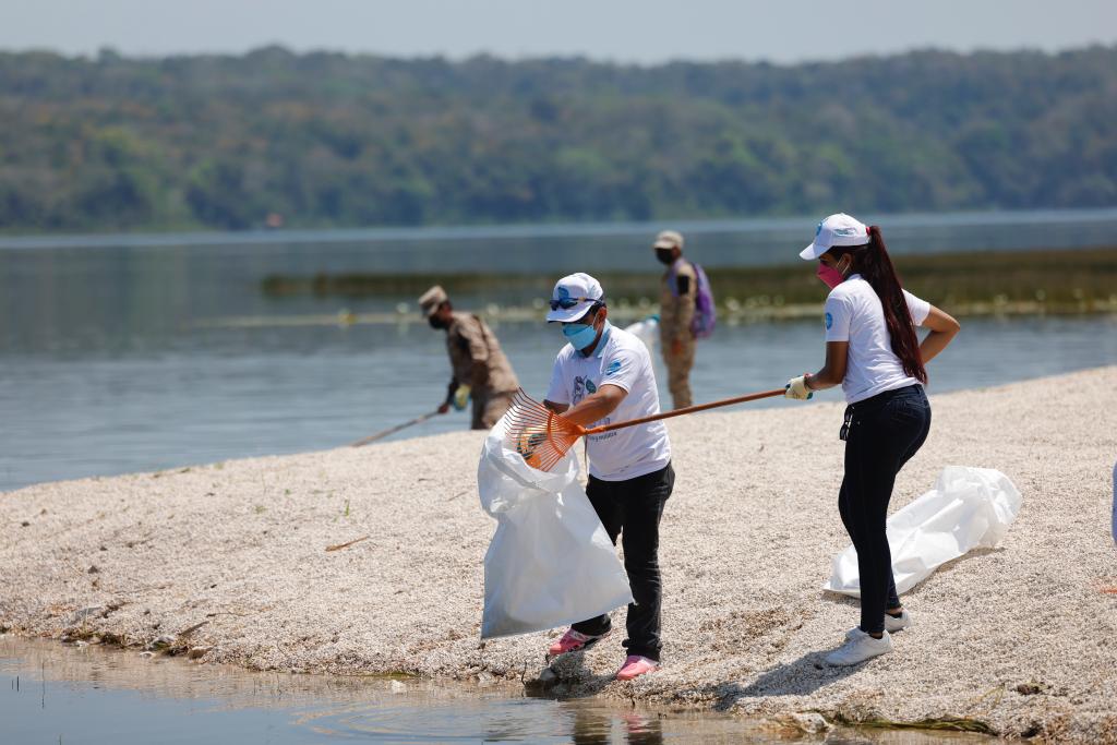 Además, equipos de buzos se sumaron a la estrategia para desarrollar la limpieza subacuática, también participó personal de las delegaciones departamentales del MARN, Consejo Nacional de la Juventud, Ejército de Guatemala, municipalidades de cada jurisdicción, comerciantes, lancheros, jóvenes del programa Guardianes Ecológicos, y vecinos.