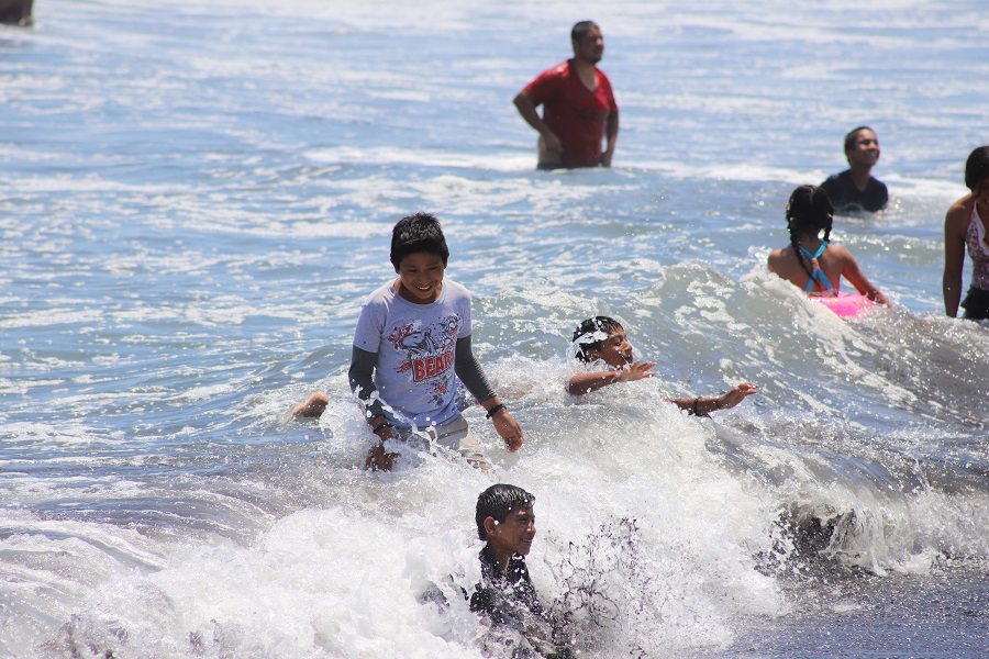 En la playa del puerto de San José, Escuintla, el MARN instaló quiscos informativos sobre el Reglamento 164-2021 para la gestión integral de los residuos y desechos sólidos comunes, y el personal de Dimards, junto a educadores de la Dirección de Formación y Participación Social recorrieron la playa pública para capacitar a los veraneantes.