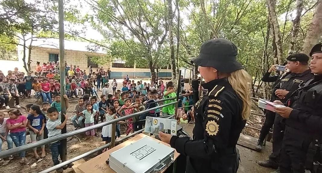 Agentes de la División de Investigación y Desactivación de Armas y Explosivos (Didae) de la Policía Nacional Civil (PNC), compartieron con niños y jóvenes de un centro educativo.