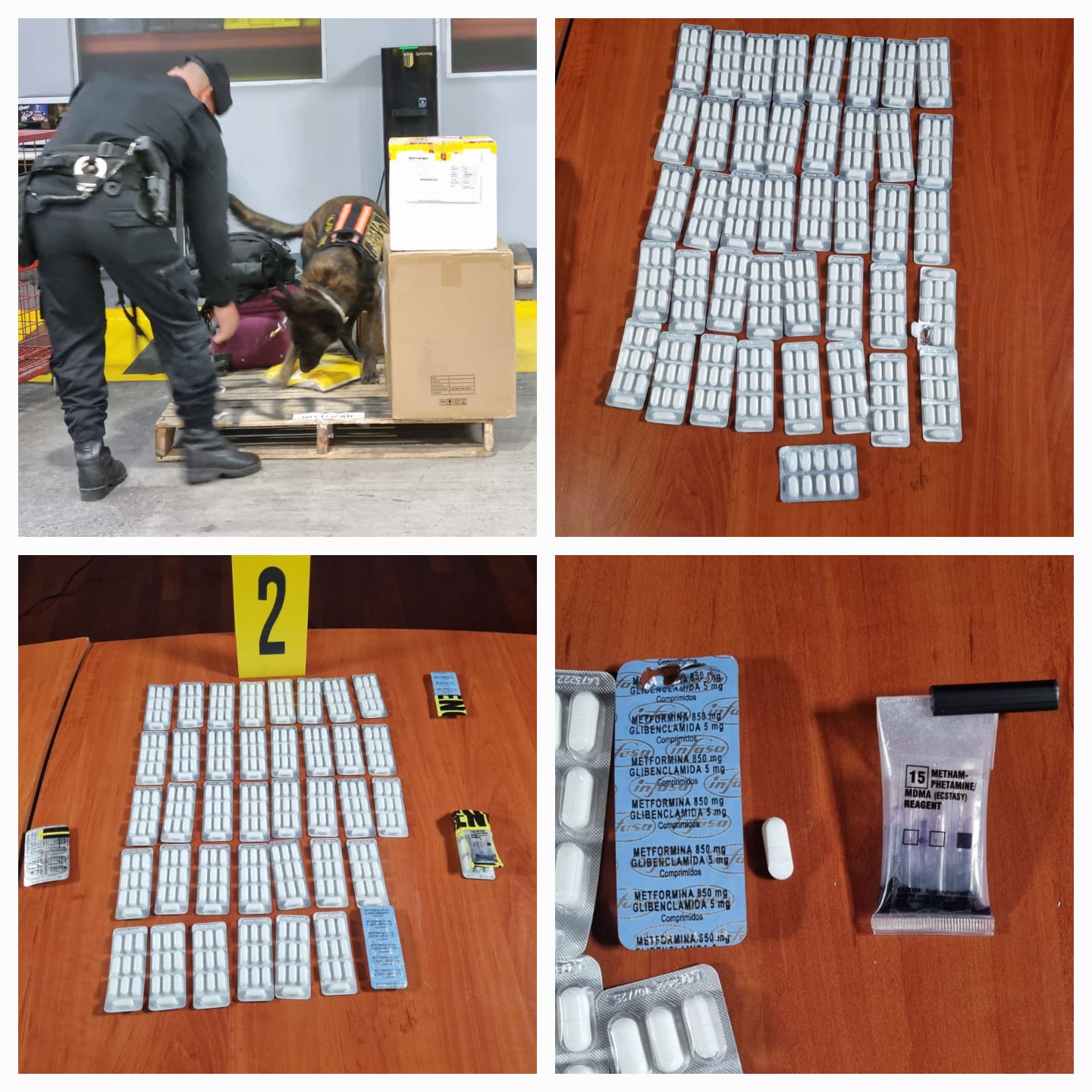 El comando antinarcótico desarrolló la inspección de la encomienda, dónde procedieron al decomiso de 452 pastillas de la droga denominada metanfetamina. La diligencia se efectuó en presencia de fiscales del Ministerio Público (MP).