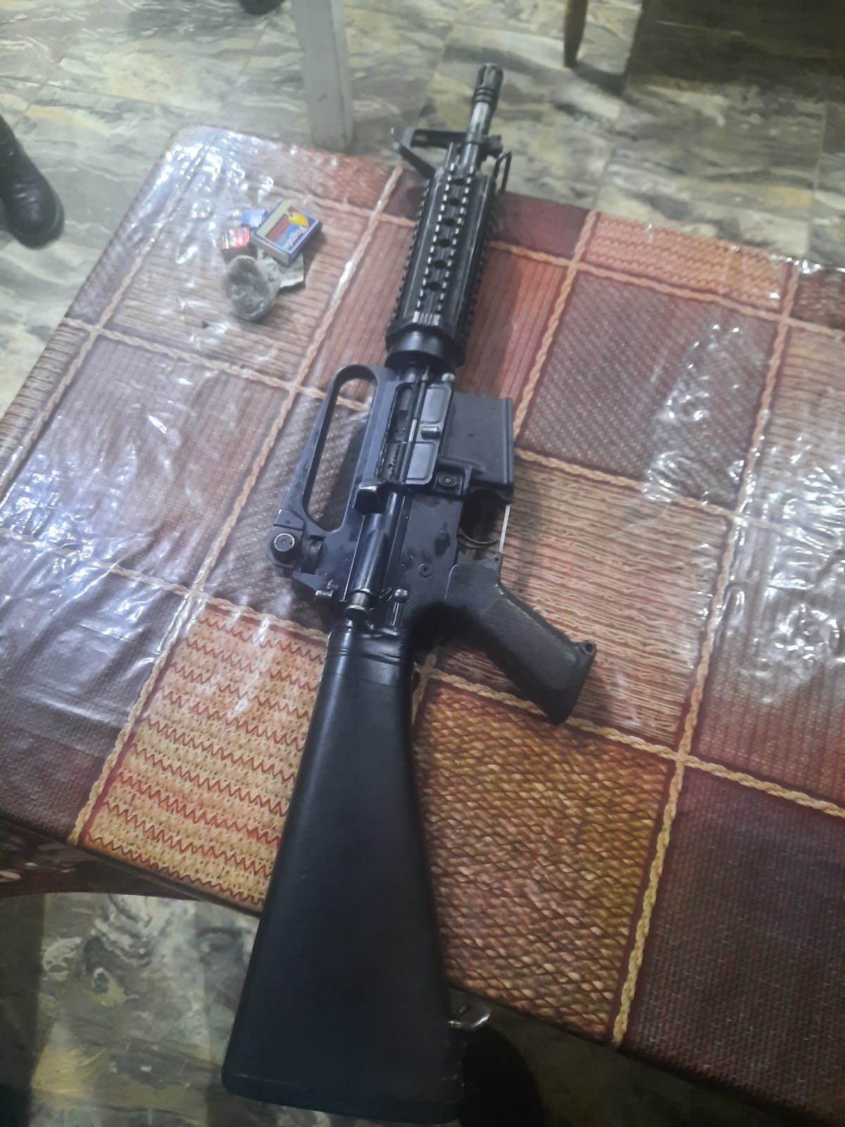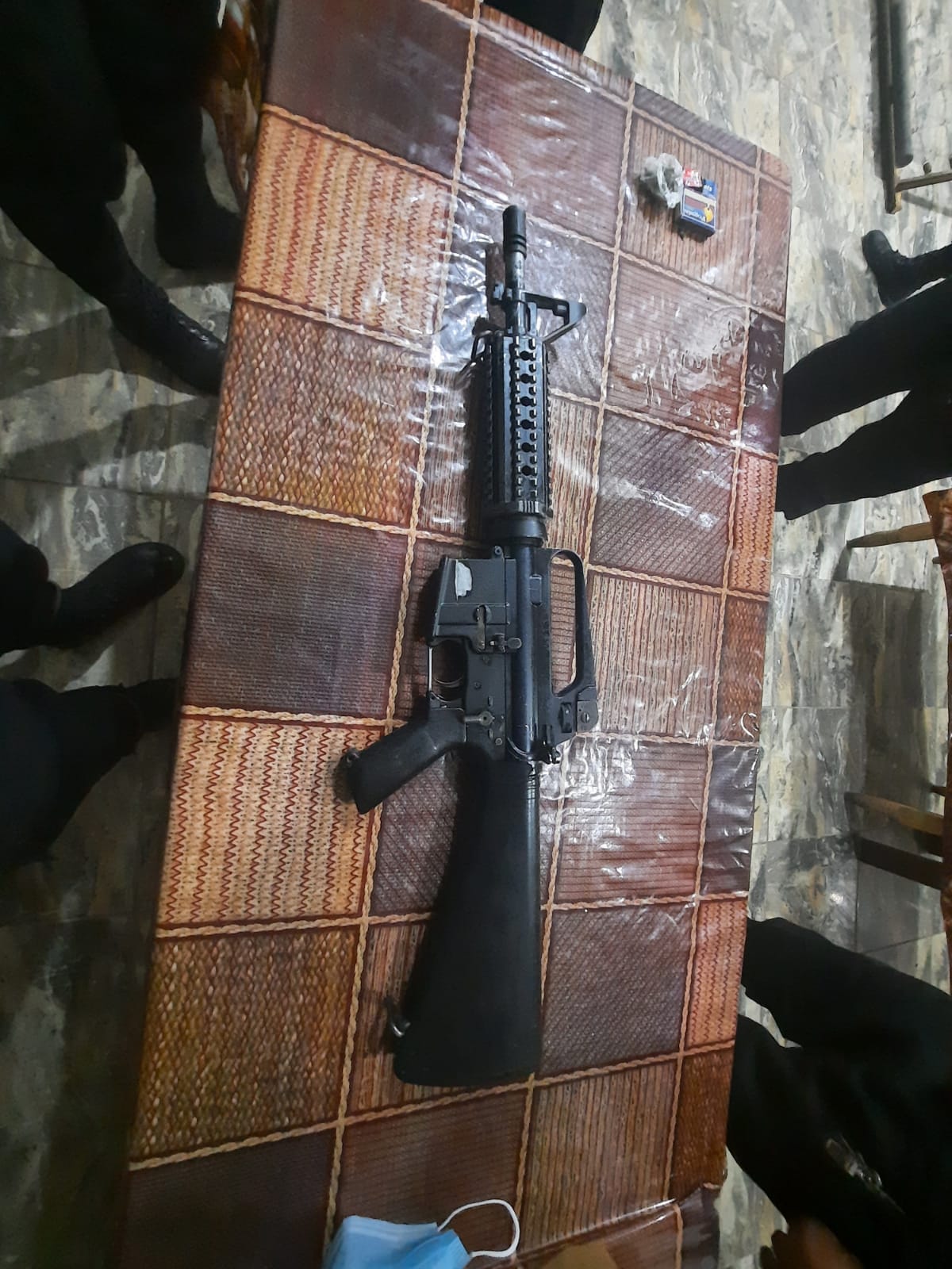 Al momento de su detención sobre el camino principal del caserío Xepatán de la Aldea Chipuac, Totonicapan, Totonicapán, llevaban un fusil color negro.