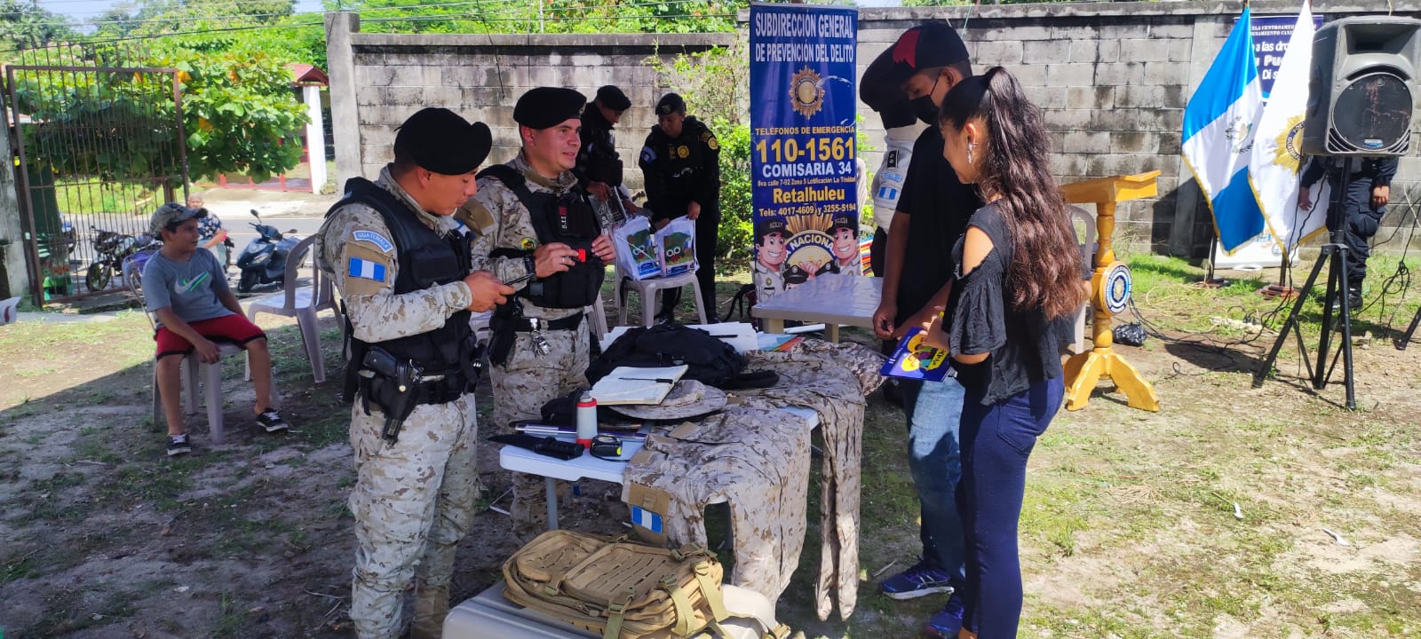 Agentes de la Policía Nacional Civil (PNC) asignados a la Delegación Departamental de Intervención en Relaciones Comunitarias (DIRC) de servicio en la comisaría 34 de Retalhuleu participaron junto a otras unidades especializadas en actividades de acercamiento con las comunidades. Estos eventos se celebraron el domingo 14 de agosto.