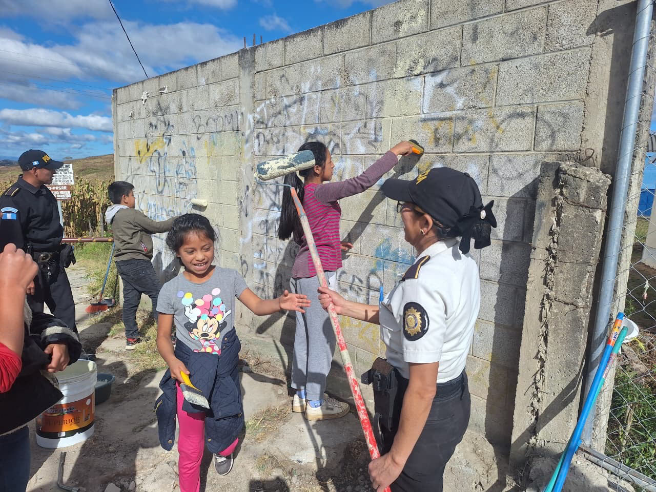 En el marco de las jornadas de prevención del delito, en tres municipios del país se realizaron acciones de limpieza, repintado y restauración en áreas públicas que habían sido vandalizadas con grafitis. Para recuperar el área se contó con la participación de la comunidad junto con sus autoridades. La jornada comenzó en Santa Cruz del Quiché, Quiché, donde se recuperaron varias paredes y muros que habían sido vandalizados. Policías y miembros de la comunidad trabajaron juntos para limpiar las superficies y repintarlas, devolviendo el espacio a la población, especialmente a los más jóvenes que podrán disfrutar de un entorno más seguro y libre.