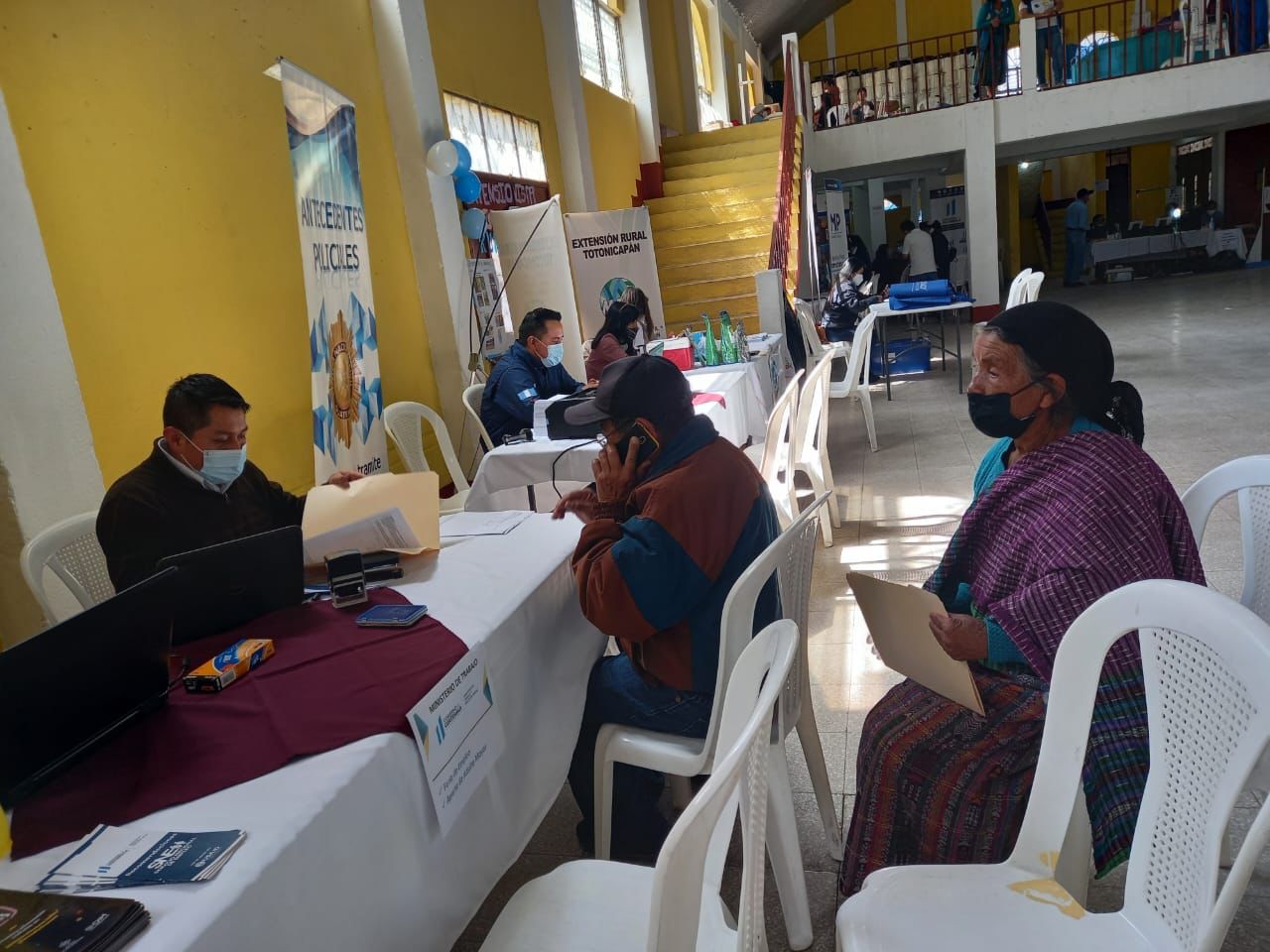 Se cuenta con la emisión de carencia de antecedentes policiales e información de medidas preventivas de seguridad ciudadana, por parte del Ministerio de Gobernación (Mingob). Una feria de empleo y presentación del Programa del Adulto Mayor, a cargo del Ministerio de Trabajo y Previsión Social (Mintrab).