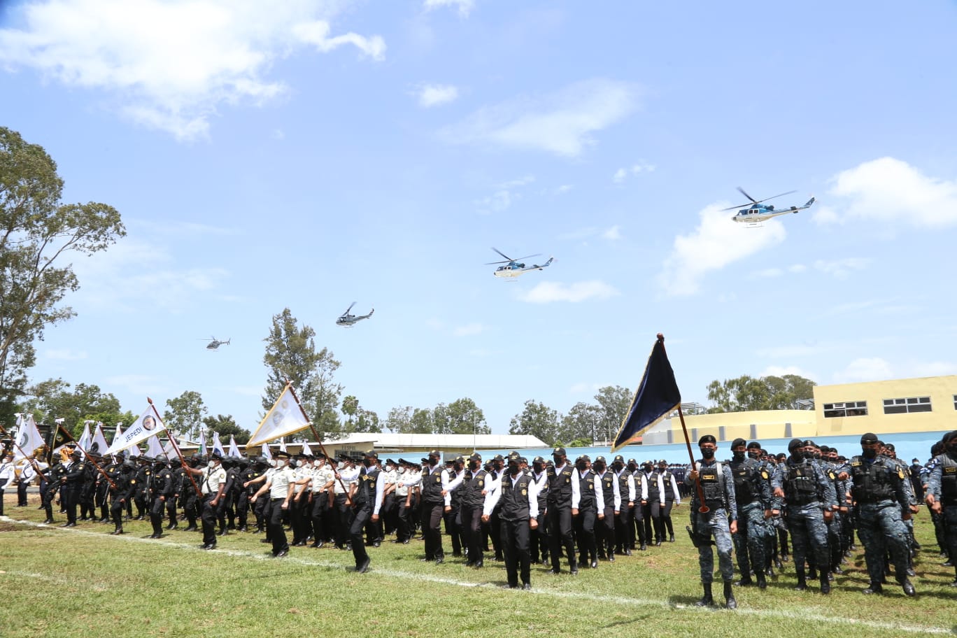 En el marco del 25 aniversario de la Policía Nacional Civil (PNC), se realizó un desfile en el Campo de Maniobras de la Escuela de Formación de Oficiales (Esfop), zona 6 capitalina. Al acto asistió el presidente de la República, Alejandro Giammattei, el ministro de Gobernación, David Napoleón Barrientos, viceministros de la cartera del Interior, altos mandos de la cúpula policial y representantes de la comunidad internacional.