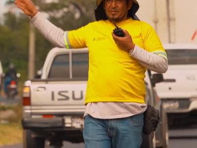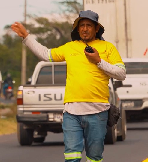 Mientras trabajamos en las carreteras, se realiza regulación del tránsito. Recuerda respeta las señales, que normalmente son con banderines para evitar accidentes.