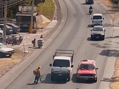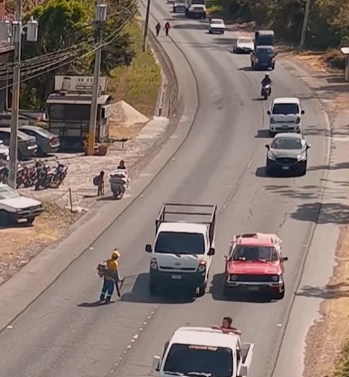 Por no respetar señales conductor casi atropella a trabajador que daba mantenimiento a carretera