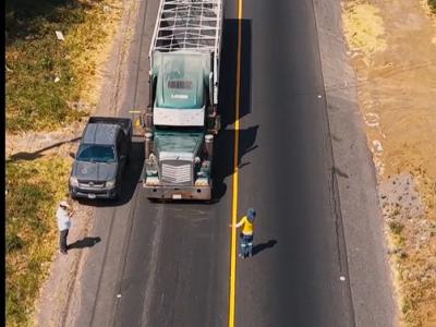Mientras trabajadores trabajaban en el mantenimiento y señalización de la ruta nacional 14, uno de ellos casi es atropellado por el camión cuyo conductor no siguió las indicaciones de no continuar en el carril donde se realizaban los trabajos.