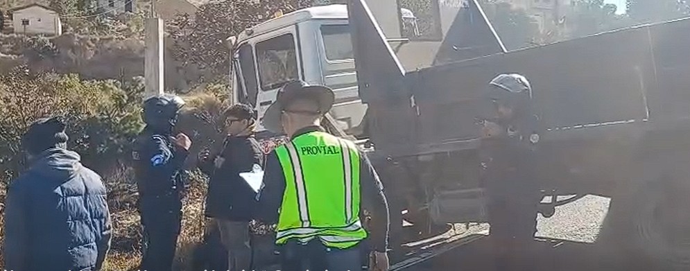 Brigadas de la Dirección General de Protección y Seguridad Vial (Provial) regulan el tránsito vehicular por colisión sobre km. 187 de ruta Interamericana CA-1 Occidente, en jurisdicción de San Cristóbal, Totonicapán, donde quedó obstruido el carril derecho con dirección al Occidente.. En el lugar se reportan daños materiales.
