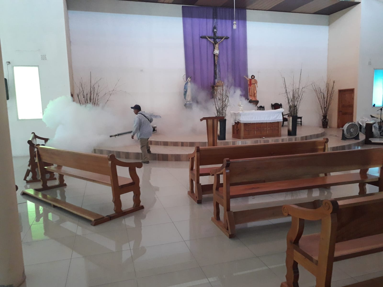 Semana Santa es una época de devoción y tradición, por eso el personal del Programa de Enfermedades Transmitidas por Vectores lleva a cabo nebulizaciones en iglesias y demás lugares de concentración de personas en El Chal, Petén.