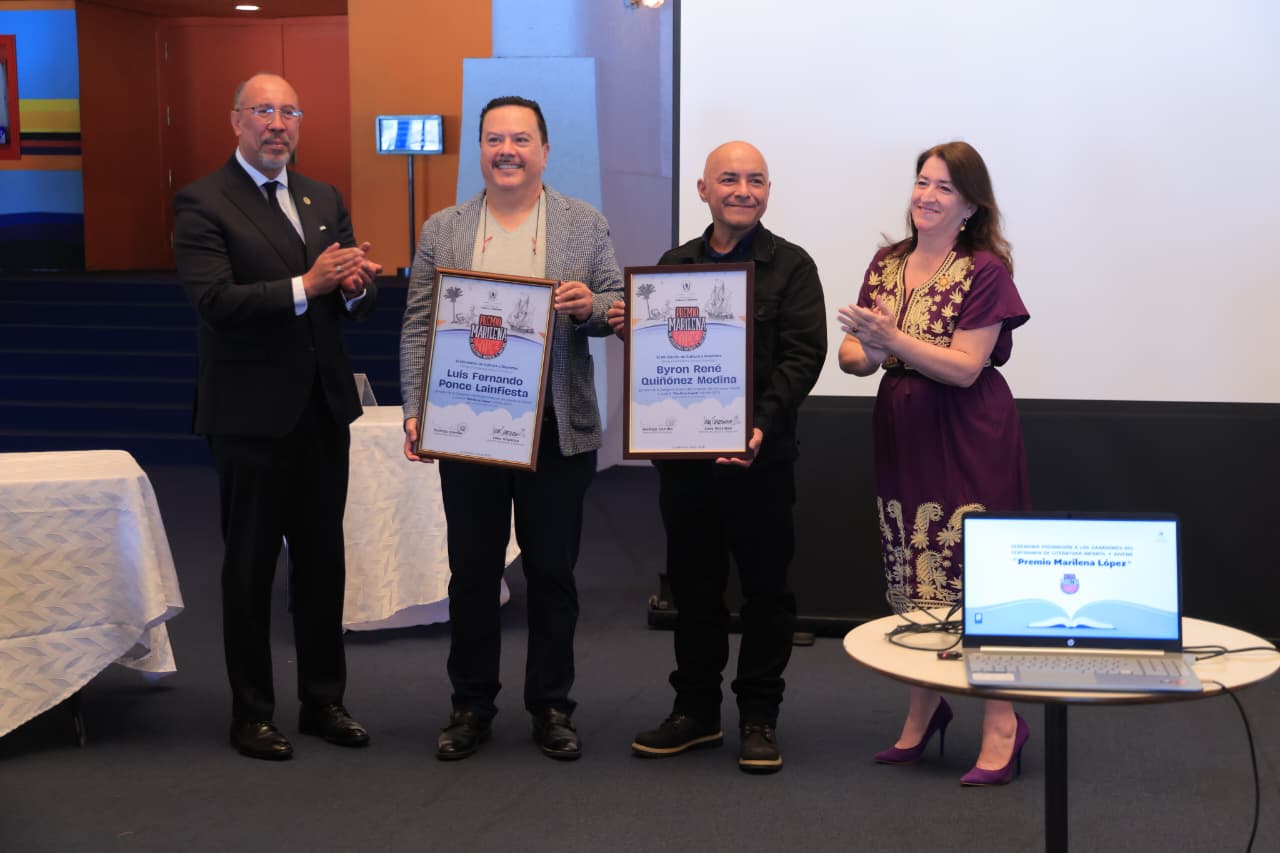 Los escritores Luis Fernando Ponce Lainfiesta y Byron René Quiñónez Medina recibieron, en un emotivo acto, el premio con el que se reconoce la consolidación de trayectorias y el surgimiento de nuevas plumas en la literatura dirigida a la niñez y la juventud en el país.