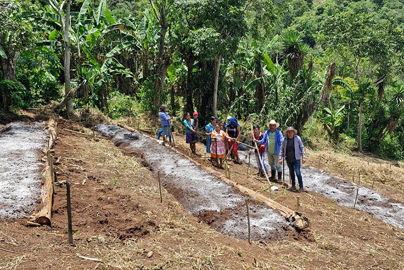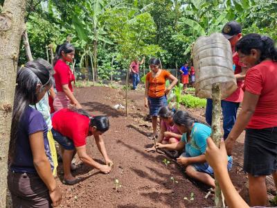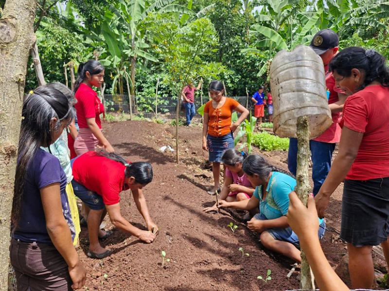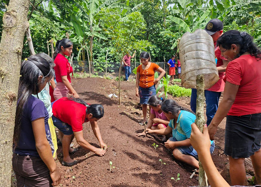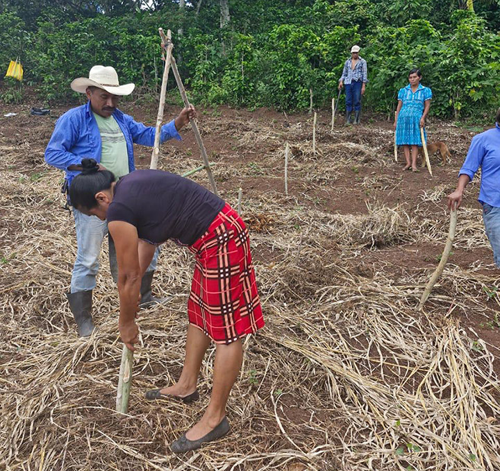 Gracias al apoyo de los extensionistas de agricultura familiar, se establecen los huertos comunales utilizando diferentes metodologías de campesino a campesino, en donde los beneficiarios observan y aprenden haciendo.