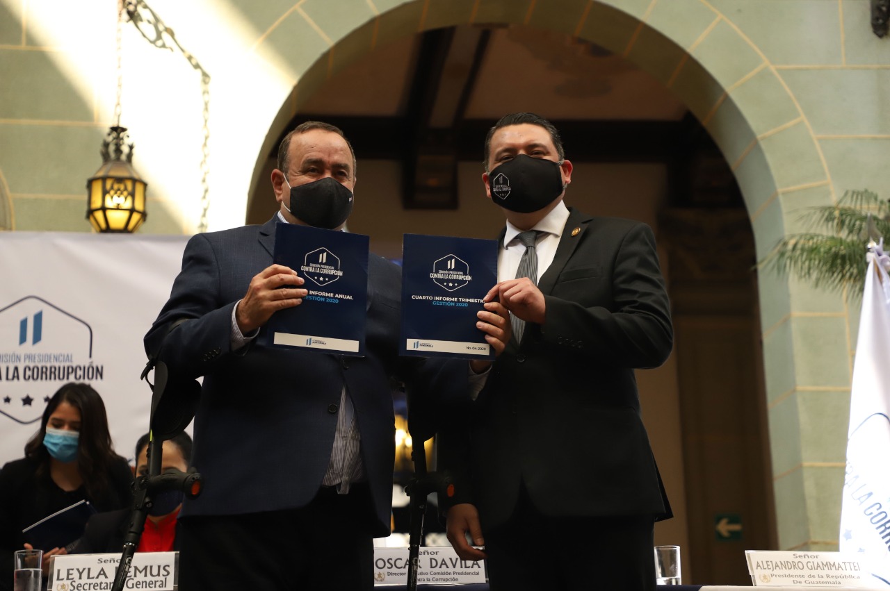 La presentación de 14 denuncias, contra funcionarios de distintas dependencias del Organismo Ejecutivo y particulares pertenecientes a empresas privadas, relacionadas con ilícitos penales y procesos administrativos anómalos cometidos contra el erario público, fue dado a conocer por la Comisión Presidencial Contra la Corrupción (CPCC) durante la entrega del Cuarto Informe Trimestral de Gestión 2020 y del Primer Informe de Gestión Anual.