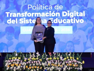 Diana Brown, coordinadora de la Comisión de Tecnología en el Consejo Nacional de Educación, indicó sentirse honrada por entregar la Política de Transformación Digital del Sistema Educativo a la ministra Anabella Giracca, con la cual se fortalecerá la calidad educativa en Guatemala.