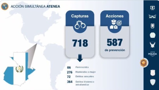 Como resultado del operativo Atenea la Policía Nacional Civil (PNC) reporta la captura de 718 personas.