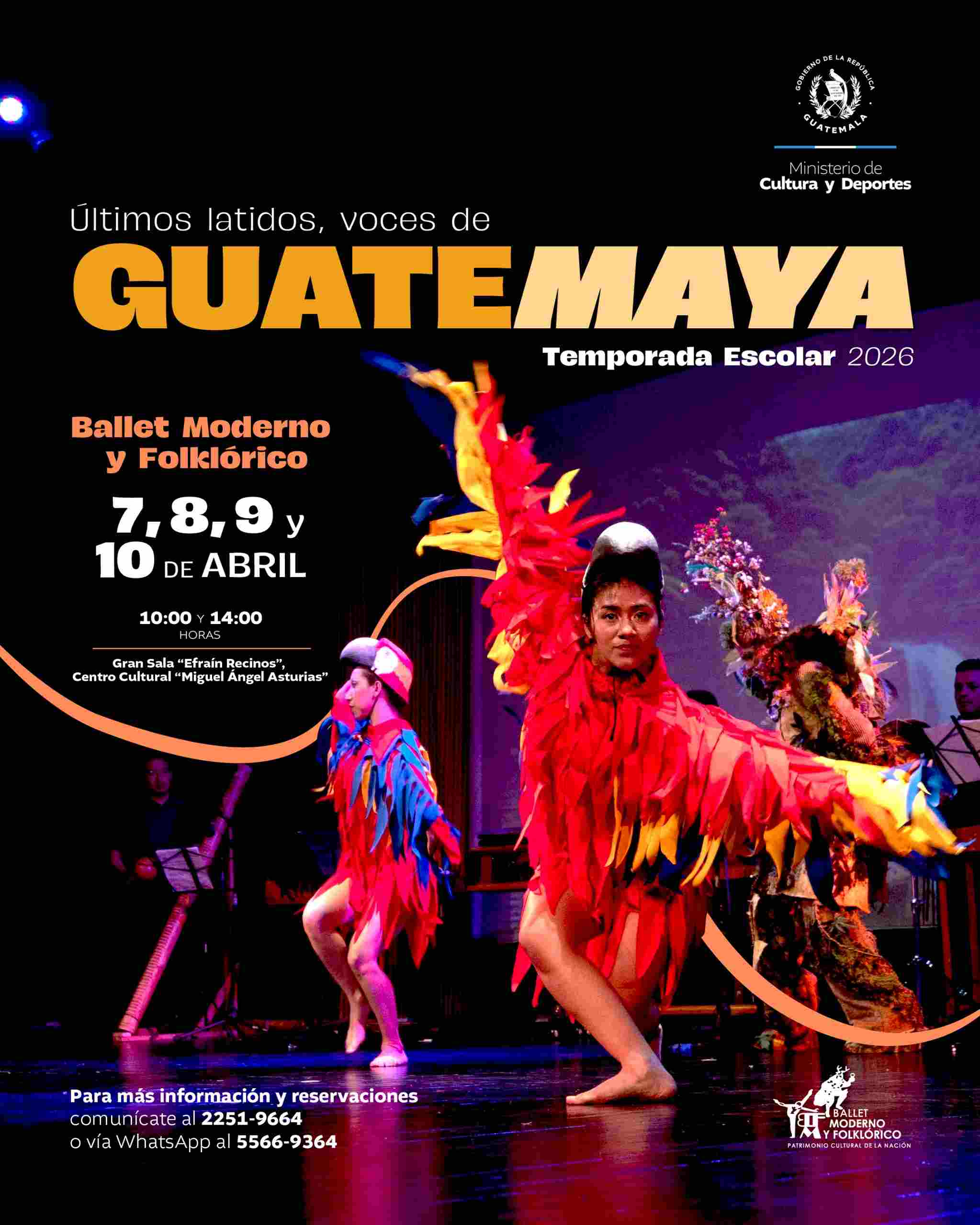 El Ballet Moderno y Folklórico, en su Temporada Escolar, presenta “Últimos latidos, voces de Guatemaya”, una propuesta que entrelaza el arte con un mensaje de conciencia ambiental, dedicada especialmente a la comunidad estudiantil.