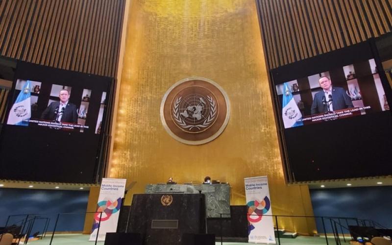 La intervención del presidente Giammattei se dio en representación de Guatemala, país que en 2020 asumió la Presidencia del Grupo de Países Afines a los Países de Renta Media.