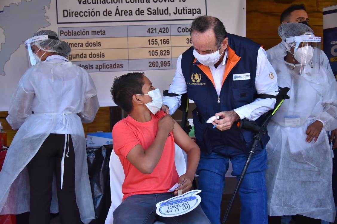 Presidente Alejandro Giammattei participó en vacunación contra COVID-19 en el departamento de Jutiapa.