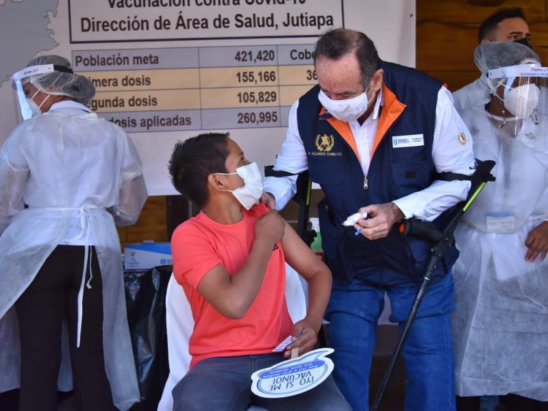 Presidente Alejandro Giammattei participa en vacunación en Jutiapa