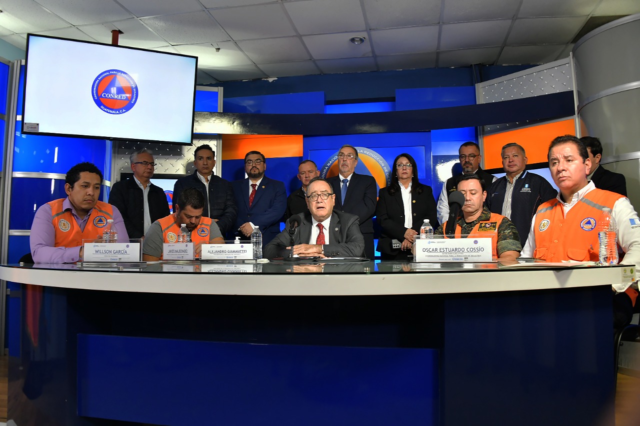 El presidente Alejandro Giammattei participó en la conferencia de prensa desde la Coordinadora Nacional para la Reducción de Desastres (Conred), para dar a conocer el accionar del Organismo Ejecutivo para atender la emergencia provocada por el fenómeno natural que afecta al país.