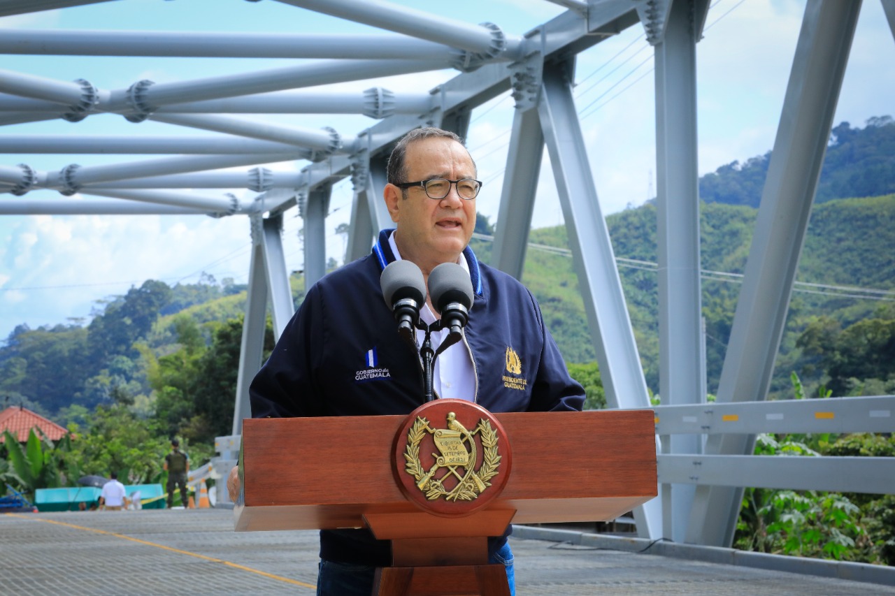 Presidente Alejandro Giammattei participó en la entrega del puente tipo Warren en Tamahú, Alta Verapaz