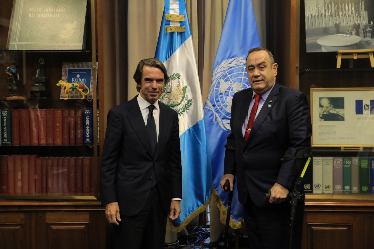 Presidente Alejandro Giammattei se reunió con una delegación de empresarios, encabezada por José María Aznar, expresidente de España, con quienes abordó las oportunidades de inversión y las fortalezas macroeconómicas que impulsa y posiciona a Guatemala como un destino atractivo y competitivo.