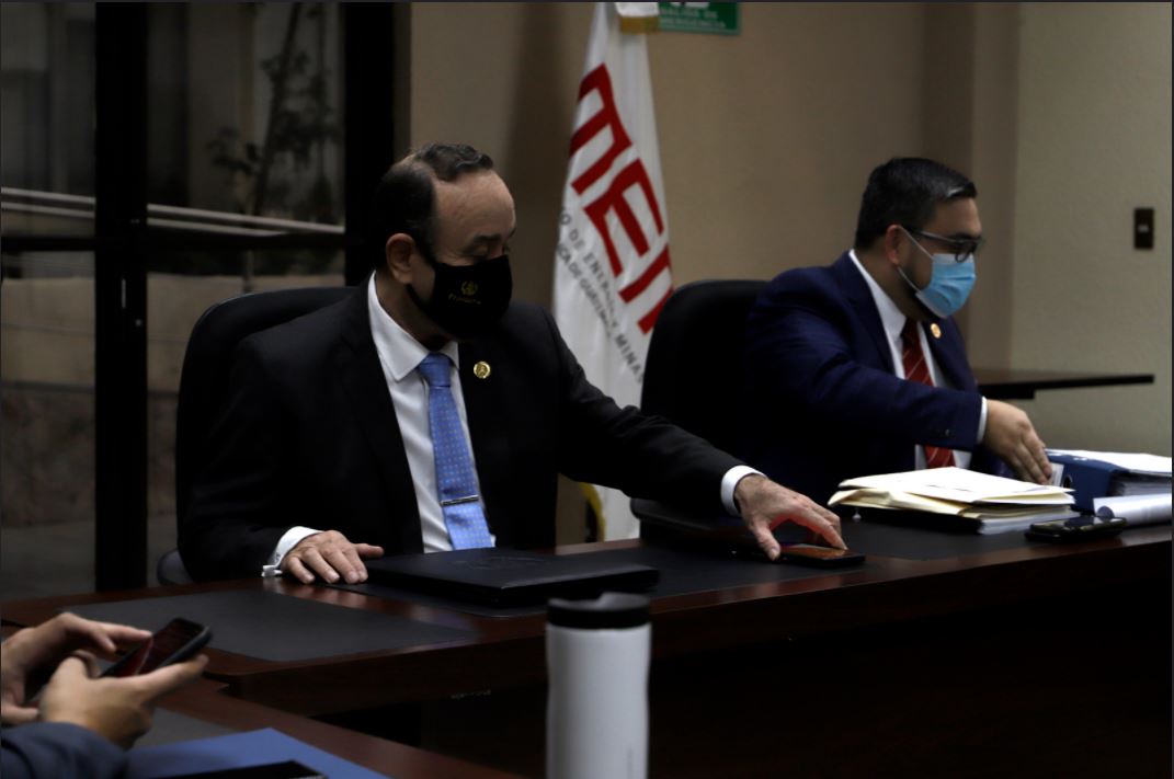 El Presidente Alejandro Giammattei visitó el Ministerio de Energía y Minas (MEM), para supervisar y dar seguimiento a los temas de trabajo de la cartera y para discutir los planes para la diversificación de la matriz energética en los próximos 15 años.