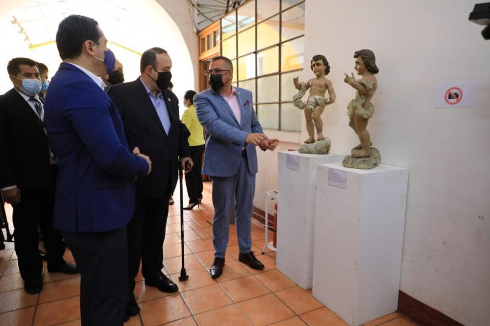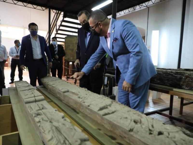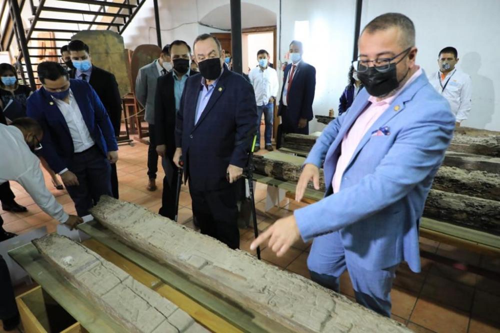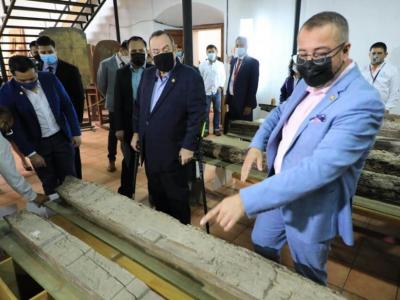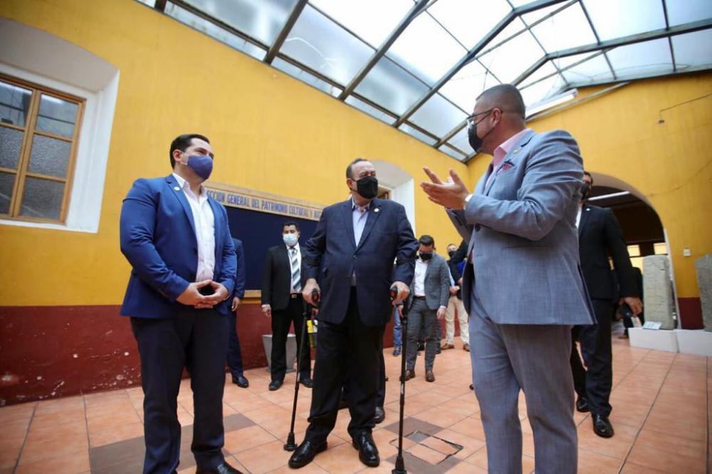 El Presidente Dr. Alejandro Giammattei, visitó este 23 de junio las instalaciones del Instituto de Antropología e Historia (Idaeh), ubicado en el Centro Histórico de la ciudad capital, para conocer los trabajos de intervención en el ex Convento de Santo Domingo, área de la Dirección General del Patrimonio Cultural y Natural.