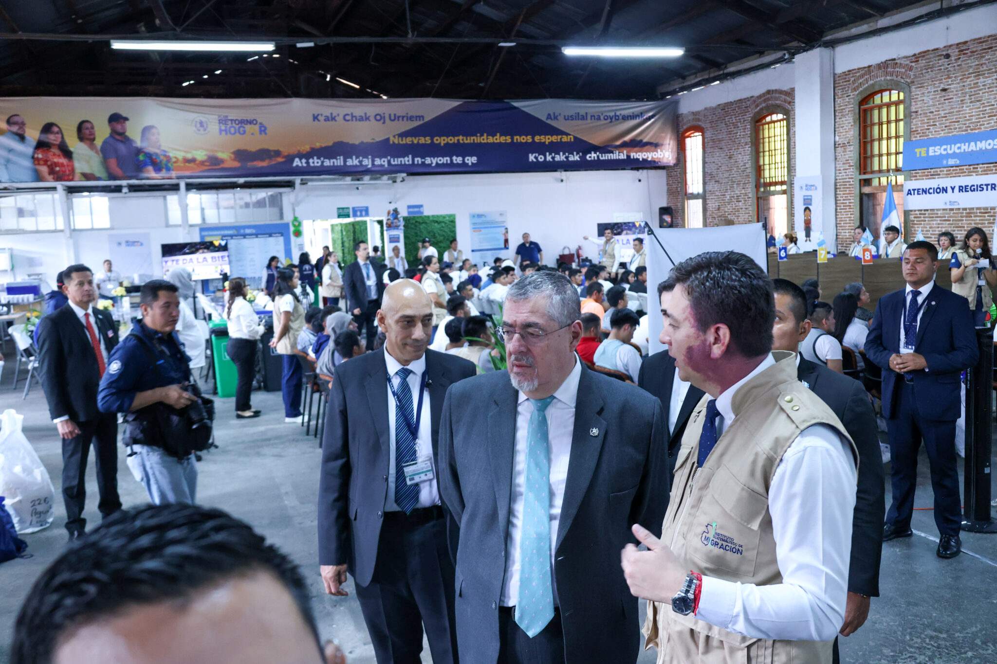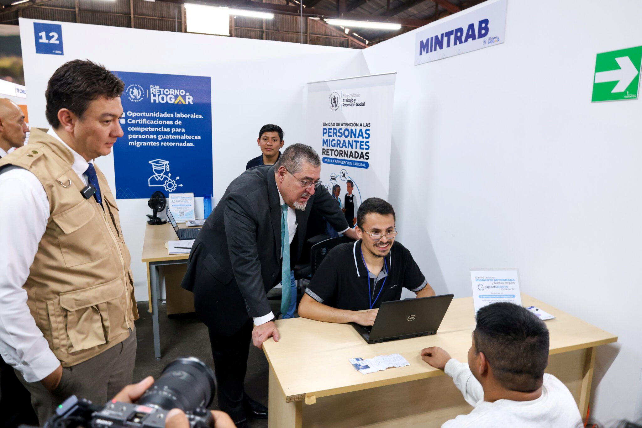El recorrido incluyó los módulos de atención de entidades clave como la Organización Internacional para las Migraciones (OIM), los ministerios de Trabajo (MINTRAB), Economía (MINECO) y Educación (MINEDUC), así como la SAT, INTECAP, Fundación Novella y diversas empresas del sector privado. En estos espacios, Arévalo constató la variedad de servicios que se ofrecen: apoyo psicosocial, asistencia médica, intermediación laboral y capacitación técnica, todos diseñados para facilitar un nuevo comienzo a los guatemaltecos retornados.