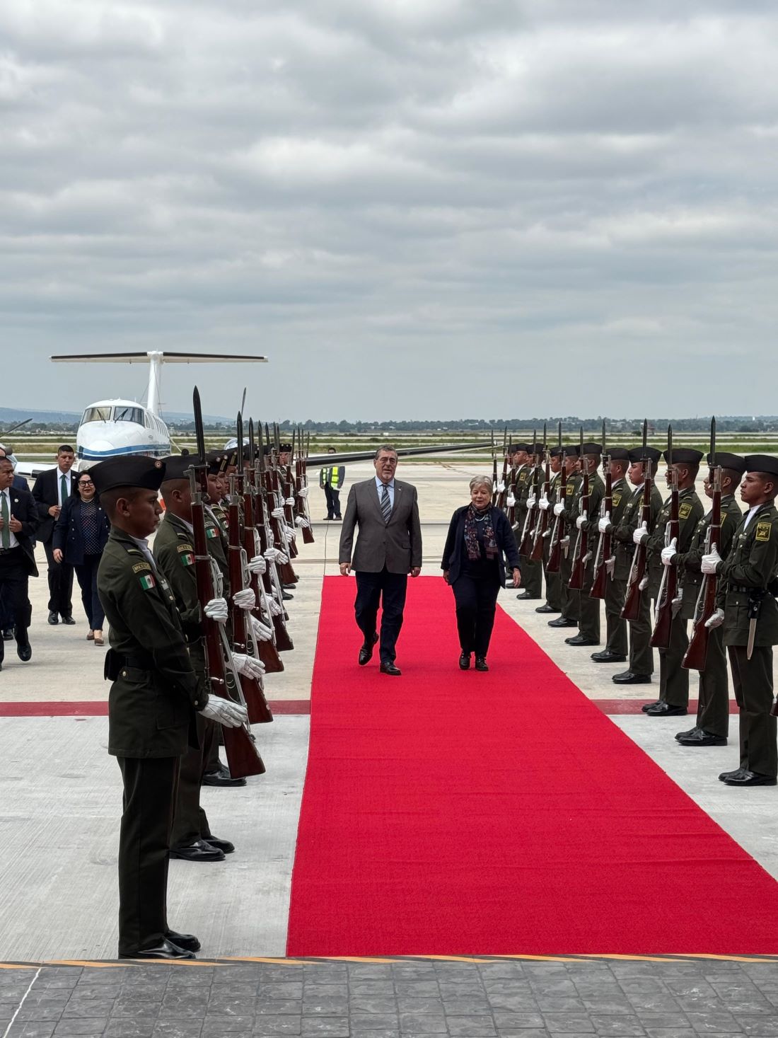 Presidente Bernardo Arévalo arribó a la Ciudad de México para participar en la toma de posesión de la presidenta de México, Claudia Sheinbaum Pardo. A su llegada a tierras mexicanas fue recibido por Alicia Bárcena, Canciller mexicana.