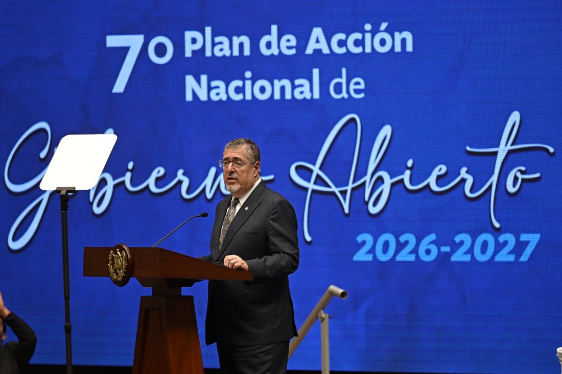 Presidente Bernardo Arévalo destacó durante el acto del lanzamiento de los compromisos del Séptimo Plan de Acción Nacional de Gobierno Abierto 2026-2027 que fue construido en un proceso de descentralización en departamentos con pobreza y pobreza extrema