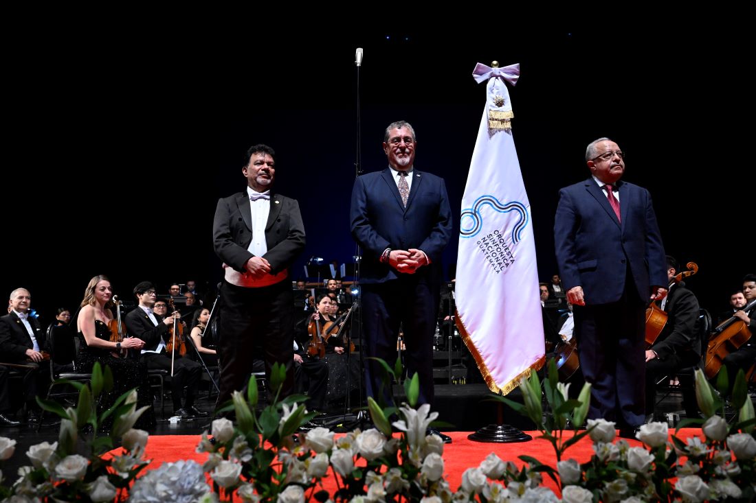 Presidente Bernardo Arévalo entregó la Orden del Quetzal en Grado de Oficial a la Orquesta Sinfónica Nacional durante el concierto que ofreció la filarmónica en la Gran Sala Efraín Recinos del Teatro Nacional Miguel Ángel Asturias