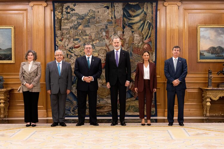 Guatemala, 22 de febrero de 2024. El Presidente Bernardo Arévalo de León agradeció a la Corona Española el apoyo ofrecido a Guatemala en los “momentos difíciles de su historia” y deseó que ambos pueblos “continúen caminando juntos y construyendo historia”.