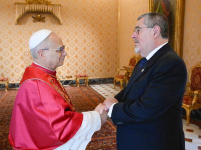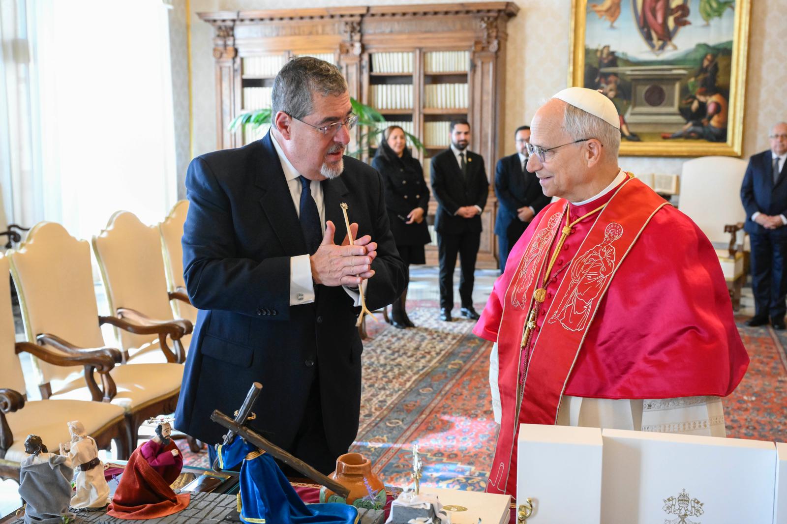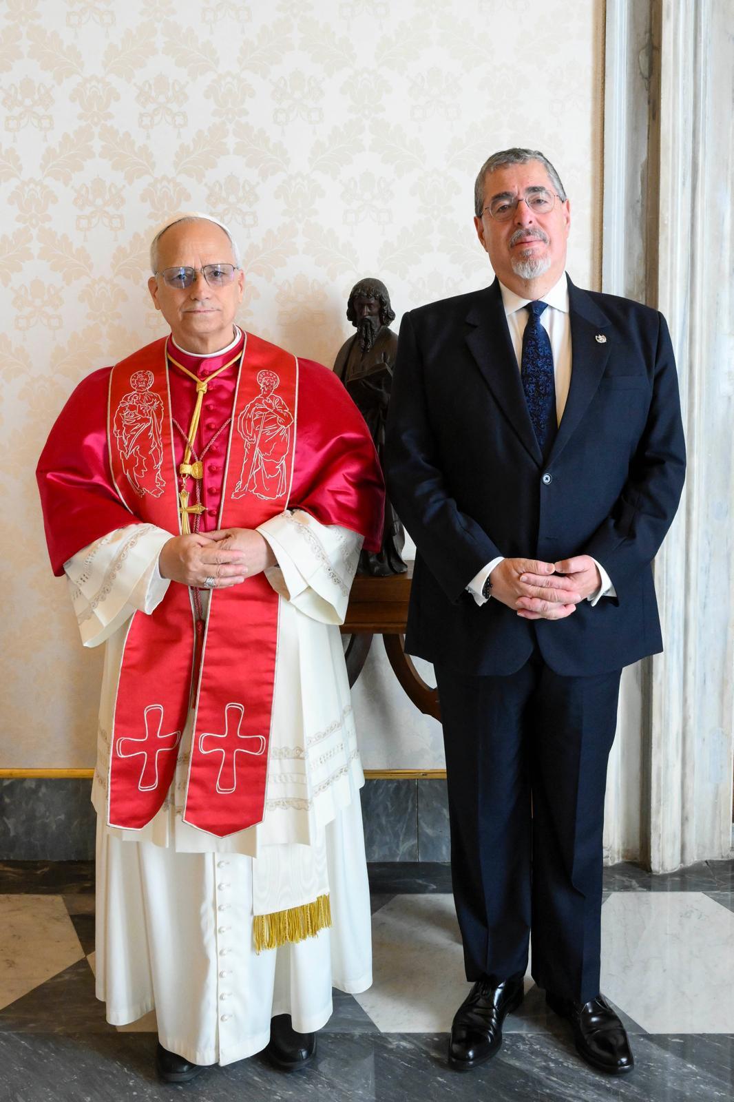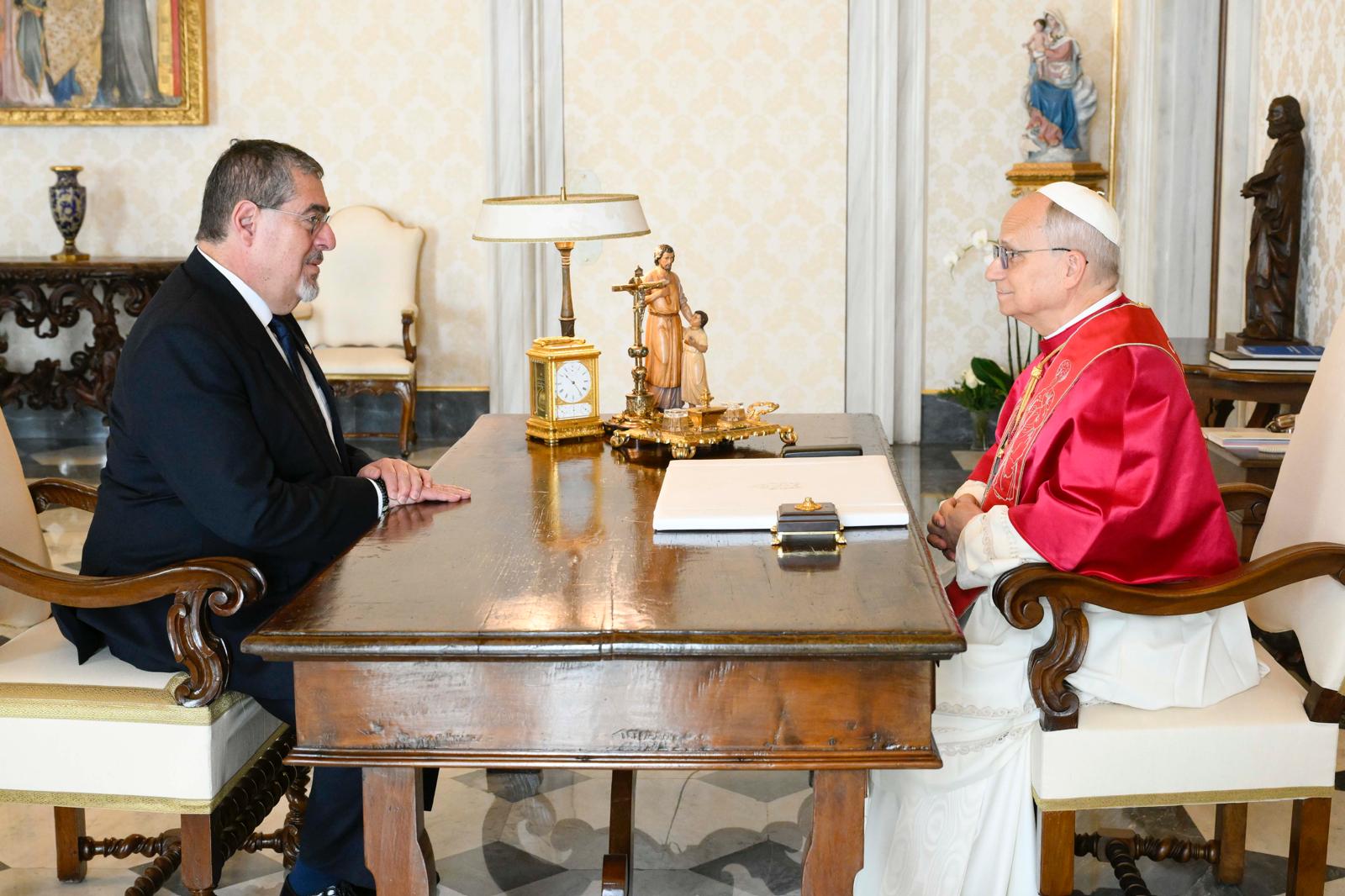 Ciudad del Vaticano, 11 de octubre de 2025 – El Presidente de la República de Guatemala, Bernardo Arévalo de León, fue recibido este sábado por Su Santidad el Papa León XIV en audiencia privada en el Palacio Apostólico.