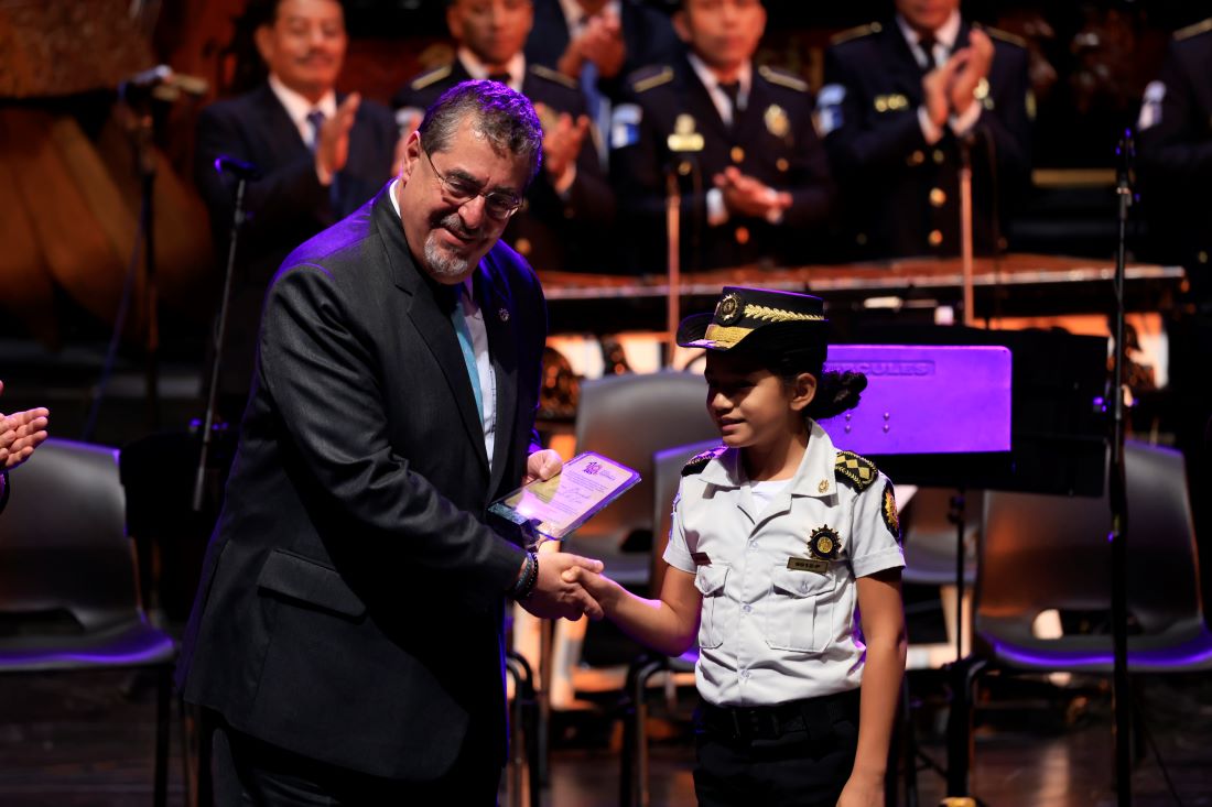 Presidente Bernardo Arévalo participa en el ensamble de marimbas por el 27 aniversario de la PNC