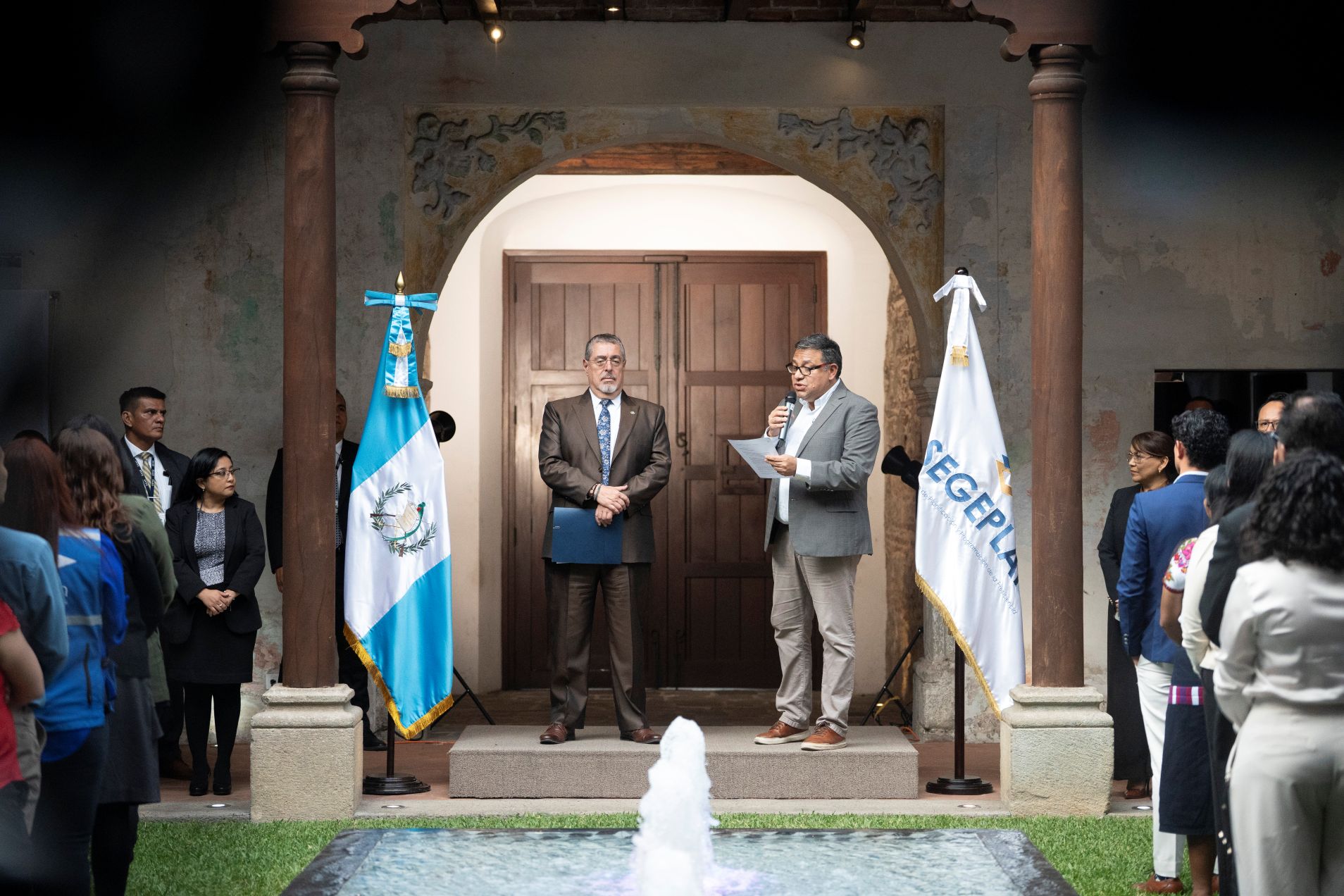 “71 años de historia, de trabajo colectivo, de pensamiento y de acción al servicio de la gente son siempre motivo de celebración; durante siete décadas SEGEPLAN ha tenido la alta responsabilidad de diseñar y acompañar diversos planes para el desarrollo del país. Pero, sobre todo, ha sido un actor clave para fomentar la construcción de una visión de Estado, una visión de largo alcance, que sobrevive en el tiempo a cualquier gobierno y que dirige los esfuerzos nacionales hacia el bienestar de la población guatemalteca”, expresó Arévalo de León, ante decenas de colaboradores y autoridades de la Secretaría.