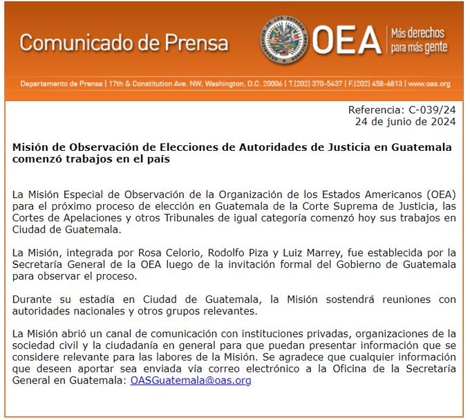 Presidente Bernardo Arévalo se reunió con los delegados de la Misión de Observación de la Organización de los Estados Americanos 20240624