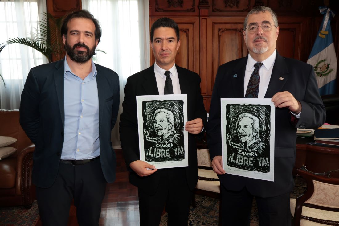 Presidente Bernardo Arévalo se reunió con Jose Carlos Zamora, hijo del periodista Jose Rubén Zamora Marroquín, quien el lunes último cumplió dos años de encarcelamiento por publicar críticas contra el anterior gobierno en el extinto diario El Periódico y por lo cual enfrenta procesos promovidos por el Ministerio Público (MP).