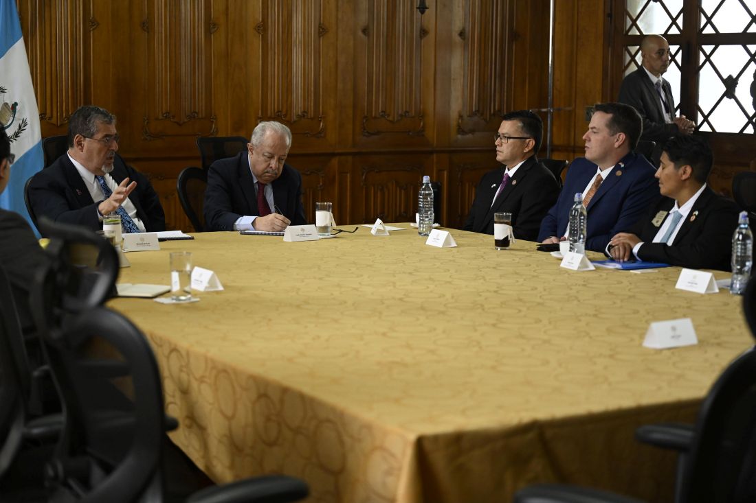 El presidente Bernardo Arévalo, acompañado del Canciller Carlos Martínez, se reunió con la delegación de congresistas que integran la Cámara de Representantes del Congreso local del Estado de Arizona, la cual estuvo encabezada por el congresista republicano Tony Rivero.