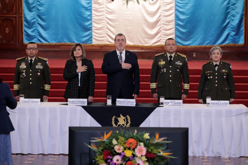 Presidente Bernardo Arévalo y vicepresidenta Karin Herrera participan en presentación Política de la Mujer Militar