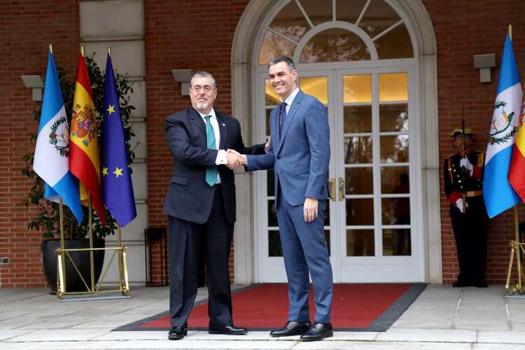 Guatemala, 22 de febrero de 2024. El compromiso pleno de España con la democracia guatemalteca fue una de las principales garantías que ofreció el Jefe de Gobierno español, Pedro Sánchez, al Presidente Bernardo Arévalo de León, quien fue recibido en el Palacio de La Moncloa, en la ciudad de Madrid.