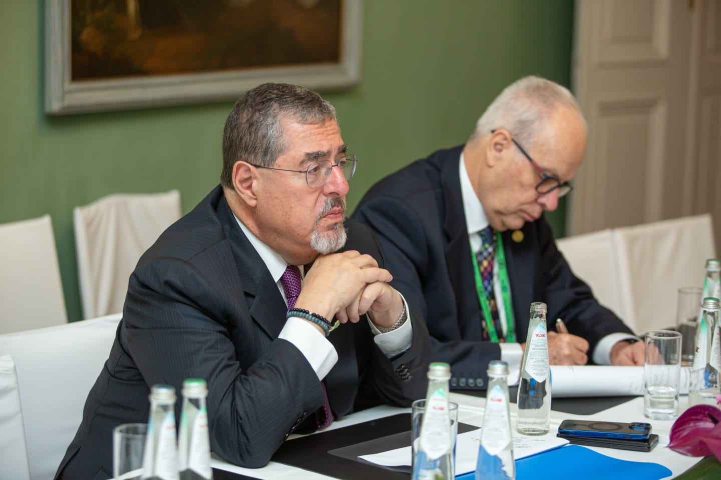 El presidente guatemalteco también se reunió con líderes internacionales, incluyendo al Presidente de Israel, Isaac Herzog; el Fiscal de la Corte Penal Internacional, Karim Khan, y el Canciller alemán, Olaf Scholz.