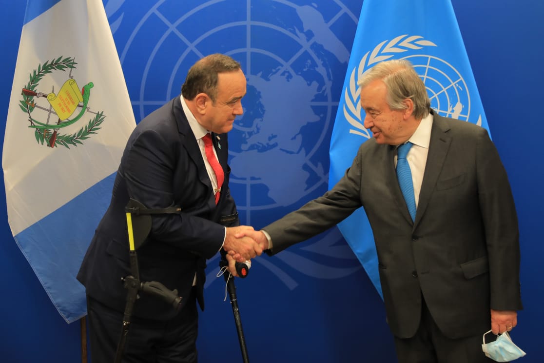 Presidente de Guatemala Dr. Alejandro Giammattei dialoga con Antonio Guterres Secretario General de la ONU