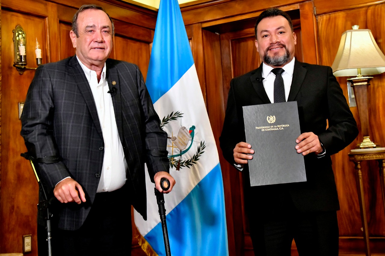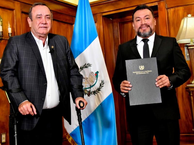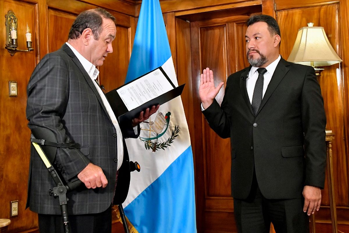 El licenciado Wuelmer Gómez González fue juramentado hoy por el presidente de la República, Alejandro Giammattei, quien lo insta a ejercer el cargo con apego a la legislación vigente y privilegiando el bienestar del país.