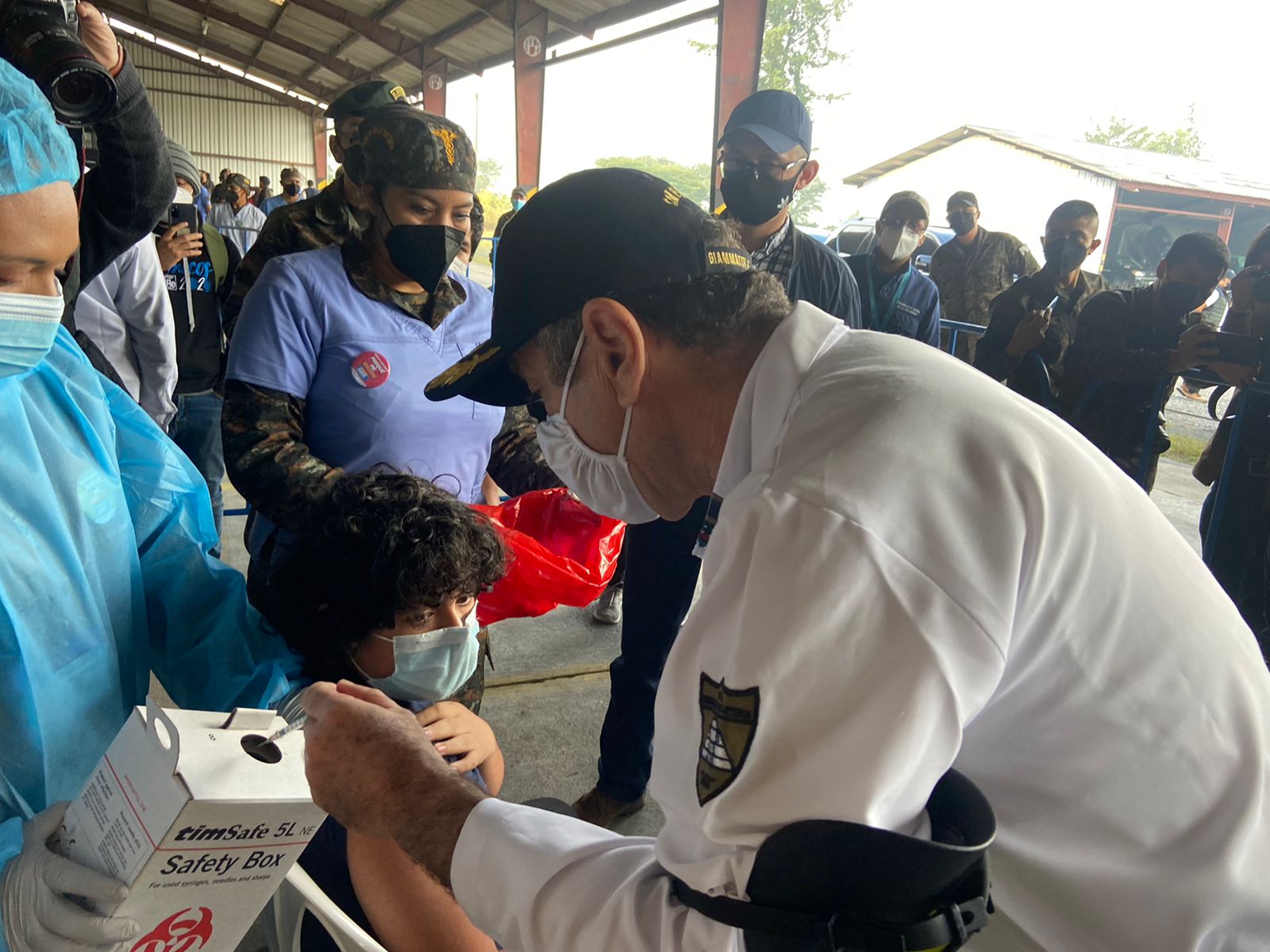 Dicha visita, fue conducida por el señor Ministro de la Defensa Nacional, General de División Juan Carlos Alemán Soto, acompañado del Coronel de Infantería DEM. Ardany Vinicio Bautista Fuentes, Comandante de esta Brigada Militar. La visita se centró en mostrar al Señor Presidente, los avances de este importante centro de vacunación contra el Coronavirus, COVID-19; avances que han sido posibles, gracias al trabajo que realizan los soldados del Ejército de Guatemala, cumpliendo diferentes roles para desarrollar la vacunación en un ambiente ordenado y eficiente. Como parte de su recorrido, el Presidente Giammattei administró personalmente dosis de vacunas a la población que acude a esta Brigada.