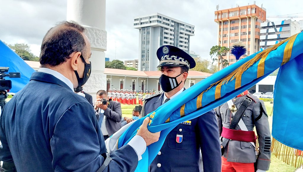 El Presidente Constitucional de la República y Comandante General de Ejército de Guatemala, Dr. Alejandro Giammattei, presidió el acto realizado en la sede de este Ministerio ubicado en la antigua Escuela Politécnica, donde también se efectuó la ceremonia de ascenso a General de División de los Generales de Brigada Henry Yovani Reyes Chigua y Walfre Omar Carranza España, quien continua al mando del Estado Mayor de la Defensa Nacional.