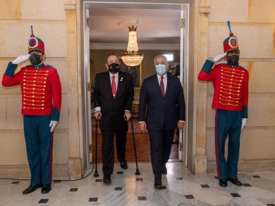El presidente de Colombia reconoció los esfuerzos del Gobierno de Guatemala por la vacunación masiva contra el COVID-19 y “en la atención a los más necesitados en circunstancias en que se han tenido que enfrentar” los embates de la naturaleza.