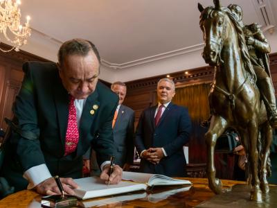 El presidente Duque destacó el acuerdo entre Guatemala y su país para firmar un “Memorándum de Entendimiento” en materia de cooperación entre las corporaciones de policía que, entre otros puntos, establece el apoyo institucional y la oportunidad de “compartir formación (del personal) e información” para combatir el crimen transnacional.