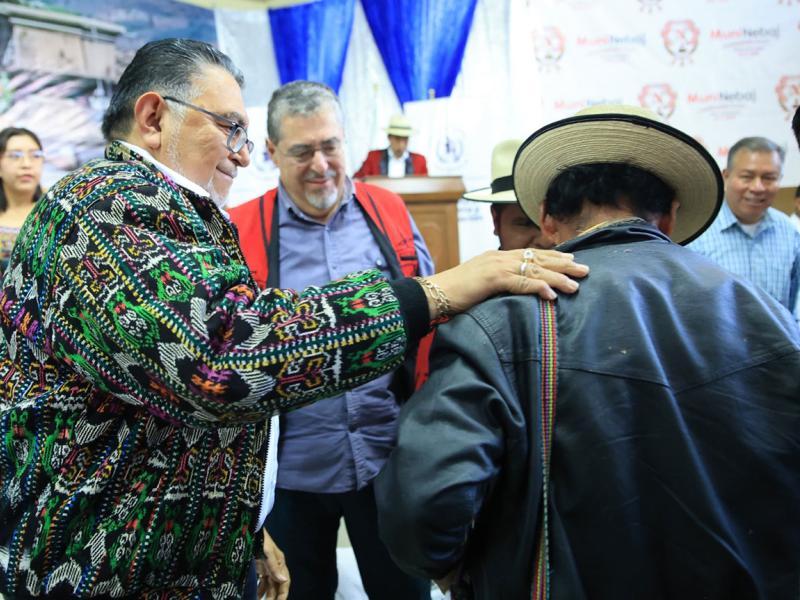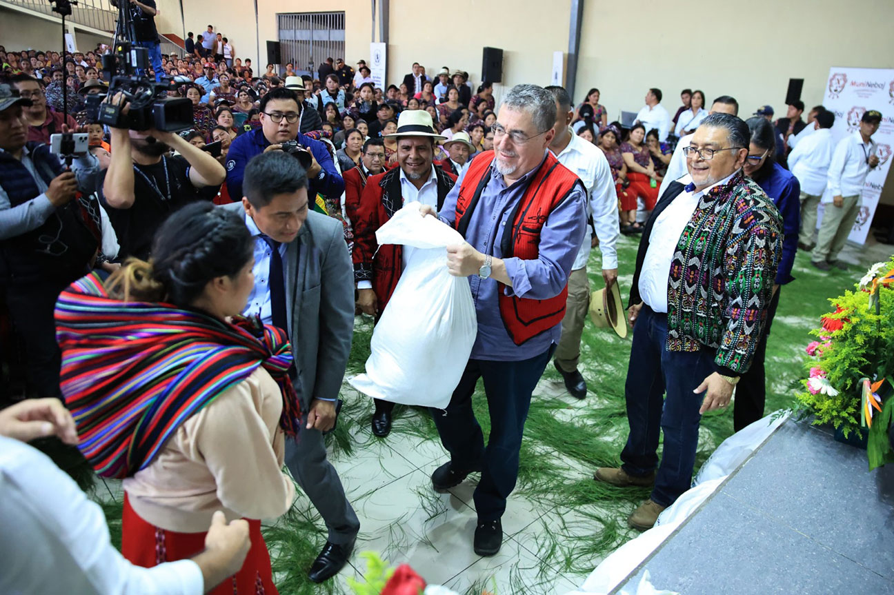 El presidente de la República de Guatemala, Bernardo Arévalo, junto con el ministro de Agricultura, Ganadería y Alimentación (MAGA), Maynor Estrada, realizaron la entrega de alimentos a 9,602 familias que se encuentran en situación de inseguridad alimentaria en el municipio de Santa María Nebaj, Quiché.