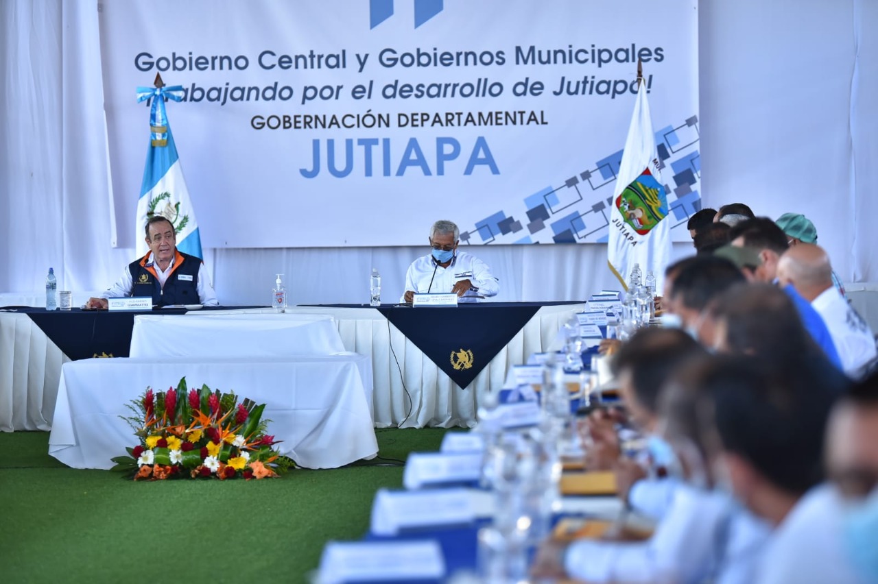 Luego de inyectar contra el COVID-19 a habitantes de Jutiapa, donde funcionan 40 centros de vacunación, instaló la reunión de alcaldes y gobernador departamental con los ministros y funcionarios del Organismo Ejecutivo.